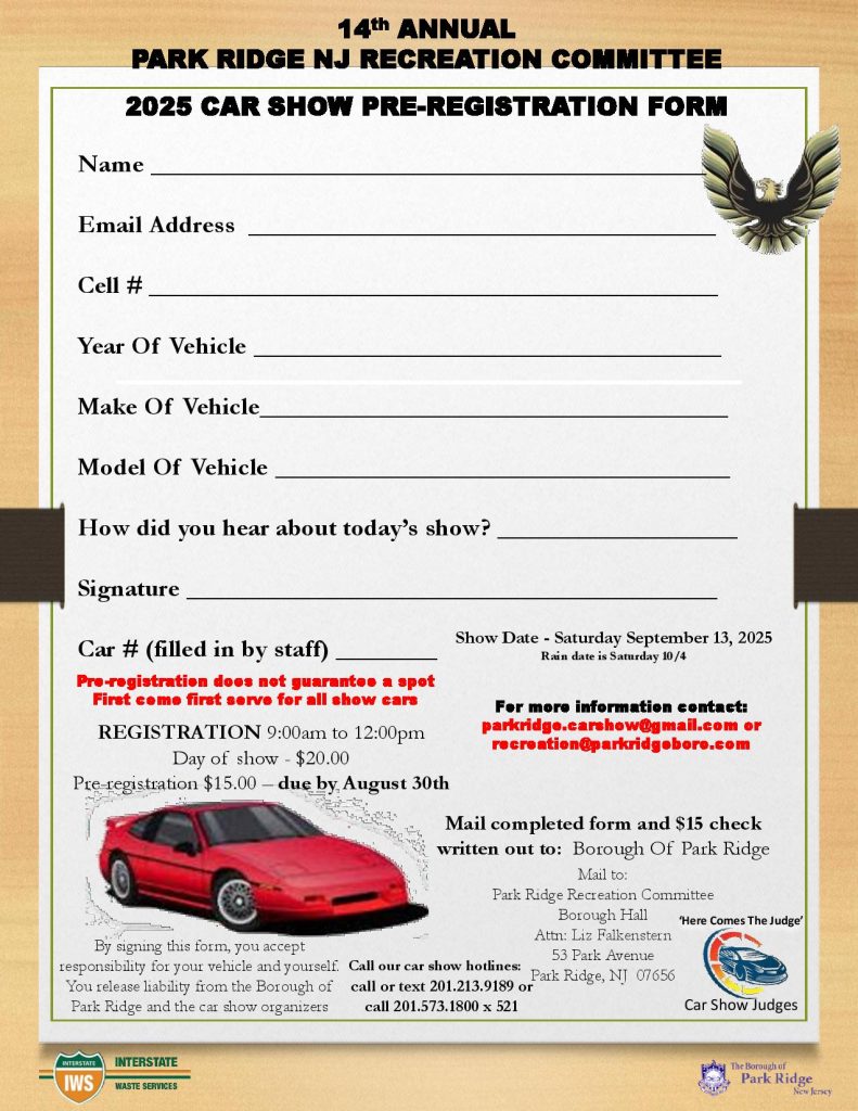 9-13-2025 Park Ridge, NJ Car-Show-Pre-registration-page-001